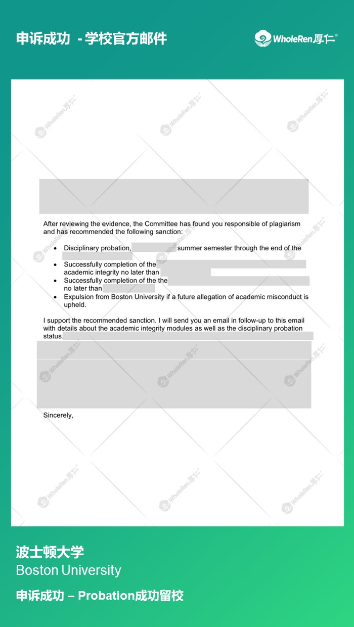 处理结果:Probation成功留校