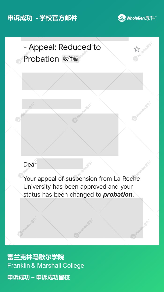 处理结果:申诉成功留校