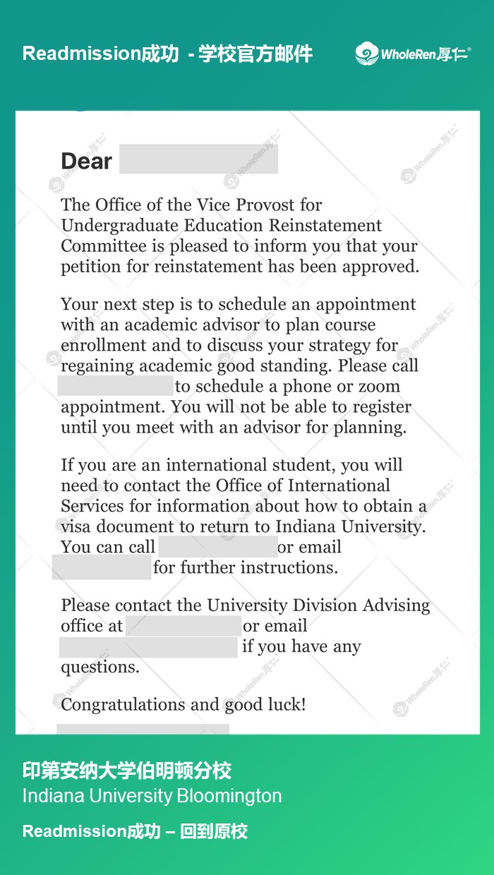专家老师及时帮助学生转到了新的学校,并分析了学生成绩不达标的根本原因,指导学生制定了合理的学习计划改善成绩,最终H同学在新的学校保持了良好的成绩,成功Readmission回到了原校。