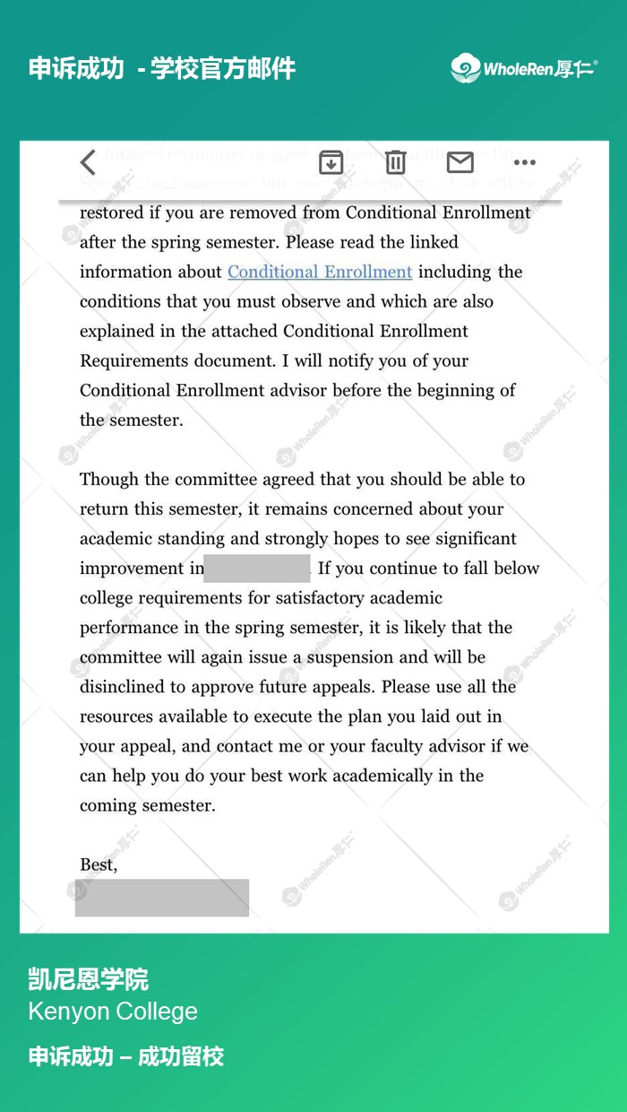 【Kenyon】X同学家庭原因成绩差被停学解释后成功留校