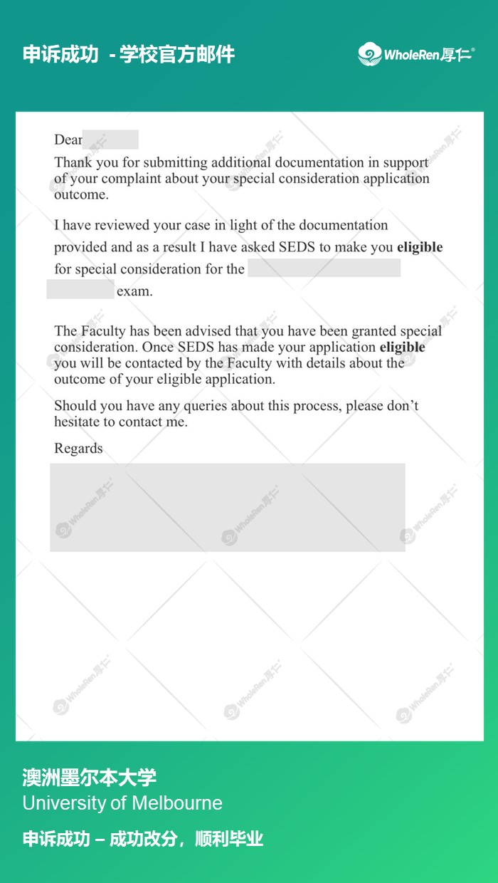 【Melbourne】Y同学网考网络不佳超时影响成绩解释后顺利毕业