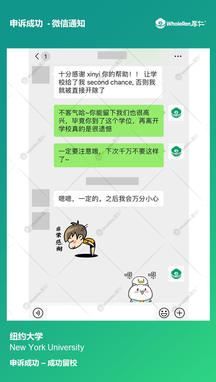 专家老师在了解学生写作经过后,指导学生解释抄袭的原因,并对自己的行为作出诚恳道歉和求情,最终得到了学校谅解,给出了Probation的警告处理,学生成功留校。