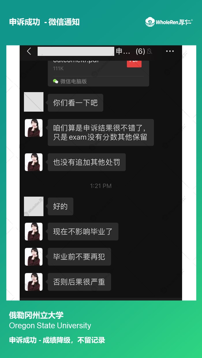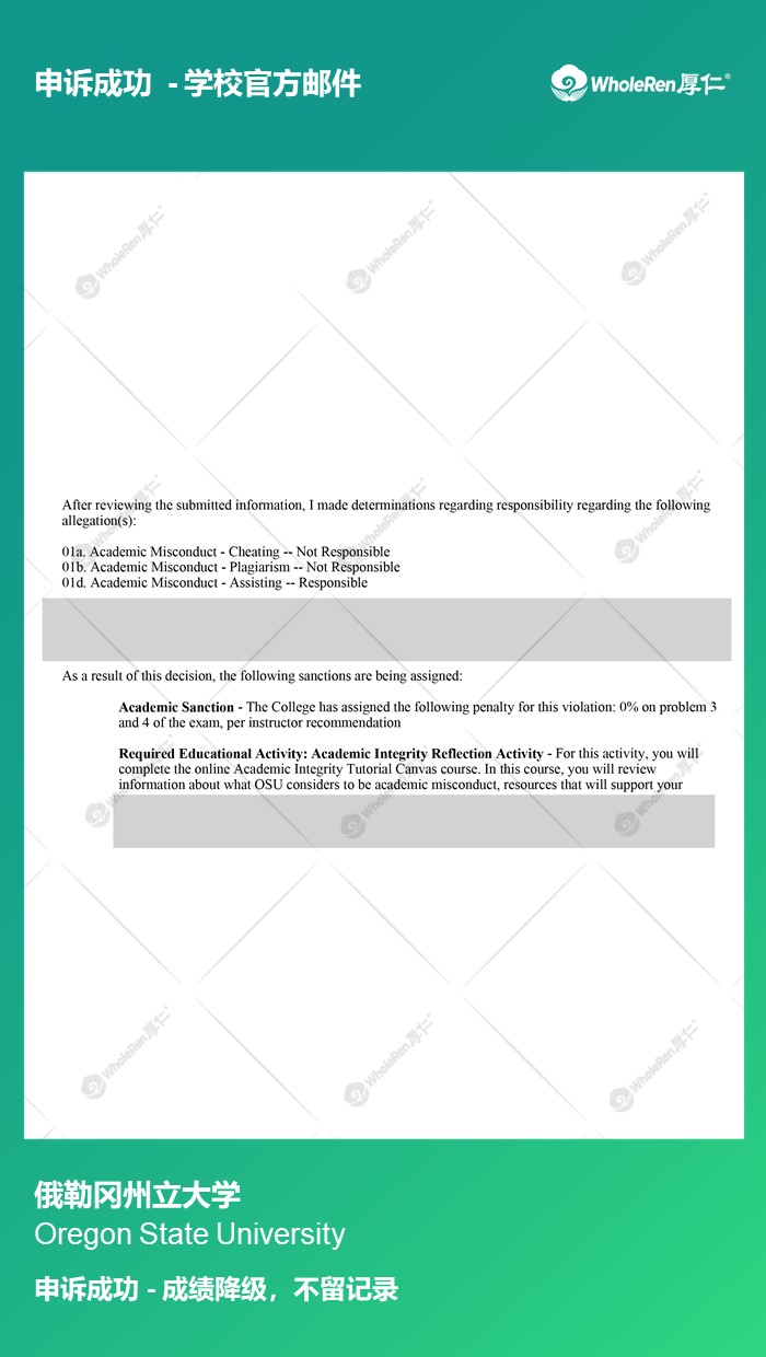 【OSU】M同学抄答案被举报二次不诚信面临开除申诉后成绩降级无其他处分