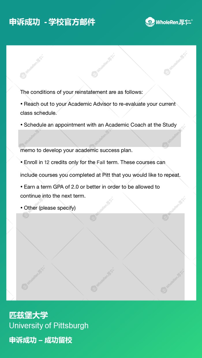 专家老师在分析学生成绩不理想的原因后,指导学生准备申诉材料,收集support letter并制定了详细的学习规划,最终申诉成功留校。