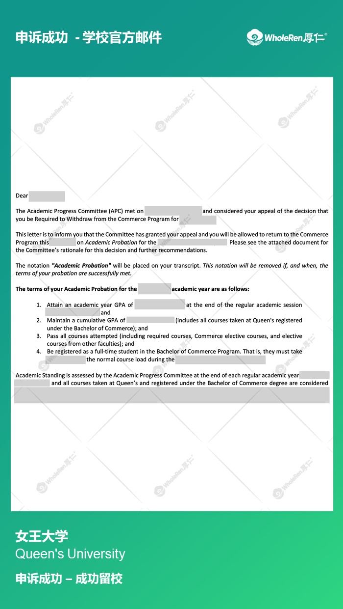 【QU】S同学留学成绩不达标被开除帮助后顺利留校