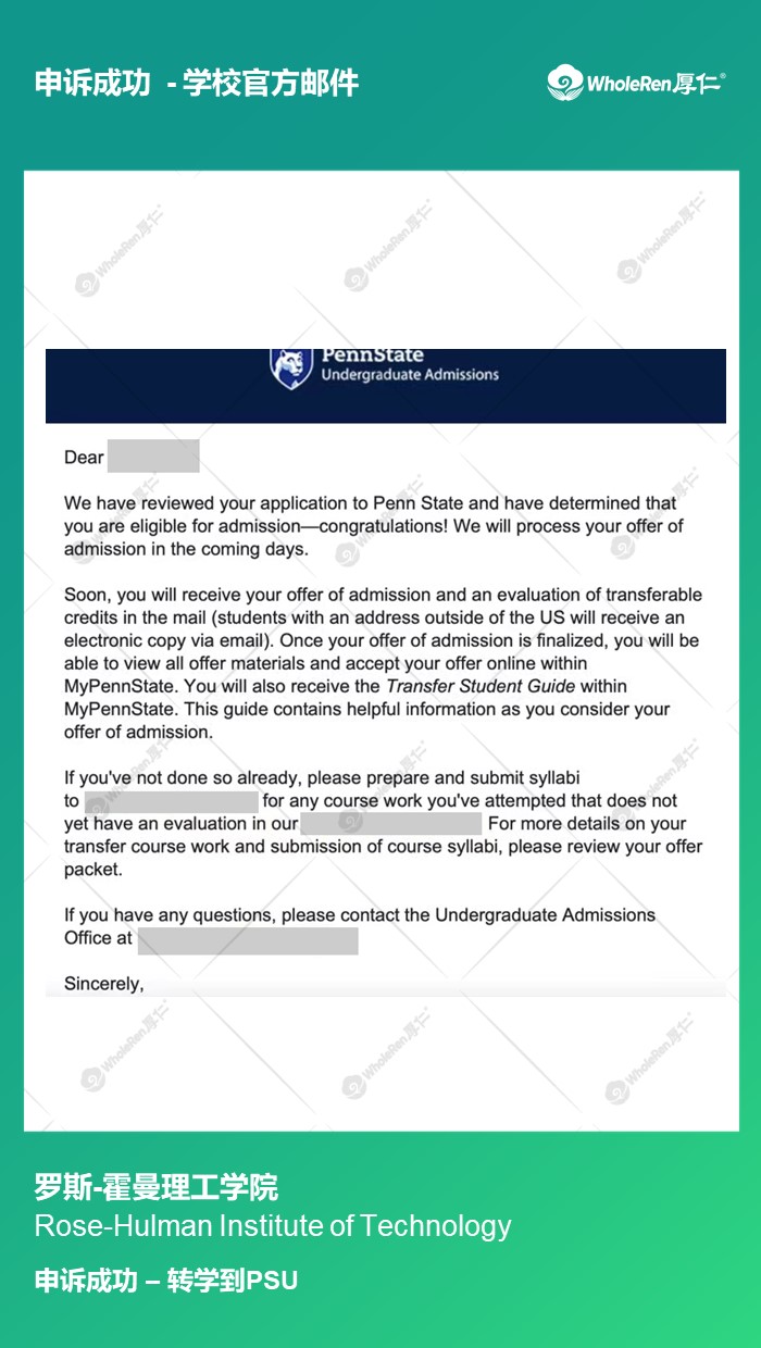 在合理的规划和指导下,专家老师帮助C同学申请转学,成功拿到了PSU的录取。