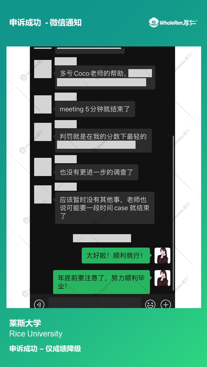 专家老师在了解情况后,指导学生与老师沟通解释,证明自己不是有意的违纪,最终只是成绩降级,无学术不良记录。