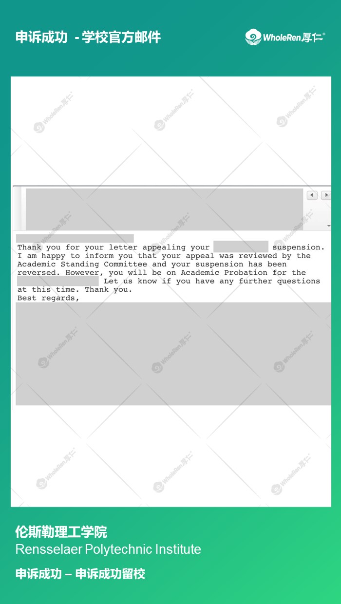 专家老师迅速制定了申诉方案,指导学生完成优质申诉信,按时递交,并申诉成功留校。