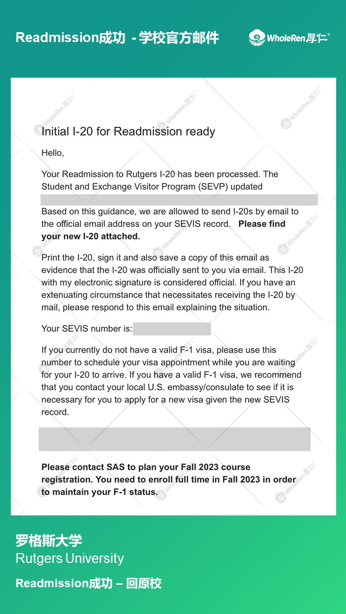 专家老师帮助学生紧急转入新的学校,指导学生迅速回归学术正轨,提升成绩。最终在老师的帮助下顺利Readmission返回原校。
