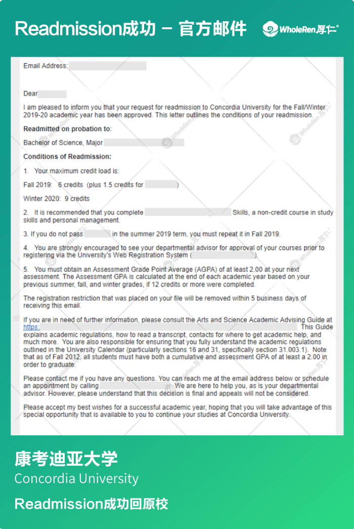 【康考迪亚大学】S同学加拿大留学挂科被停学