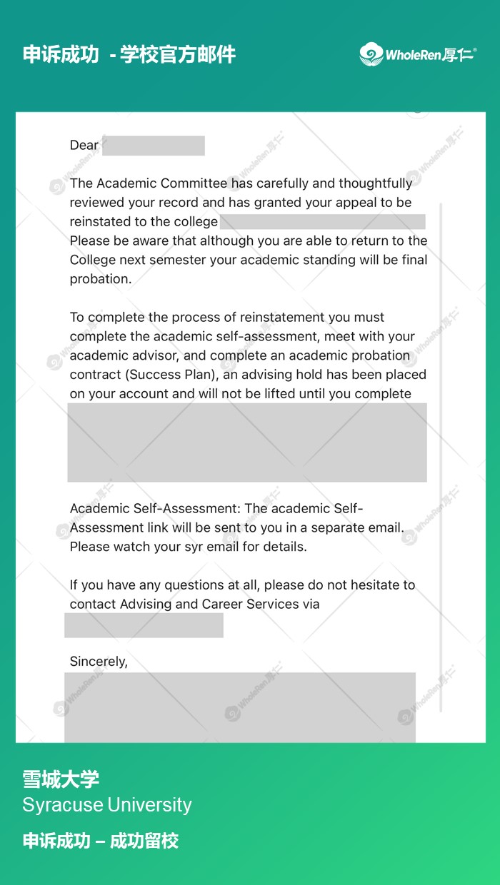 【Syracuse】J同学成绩差被停学帮助后成功留校