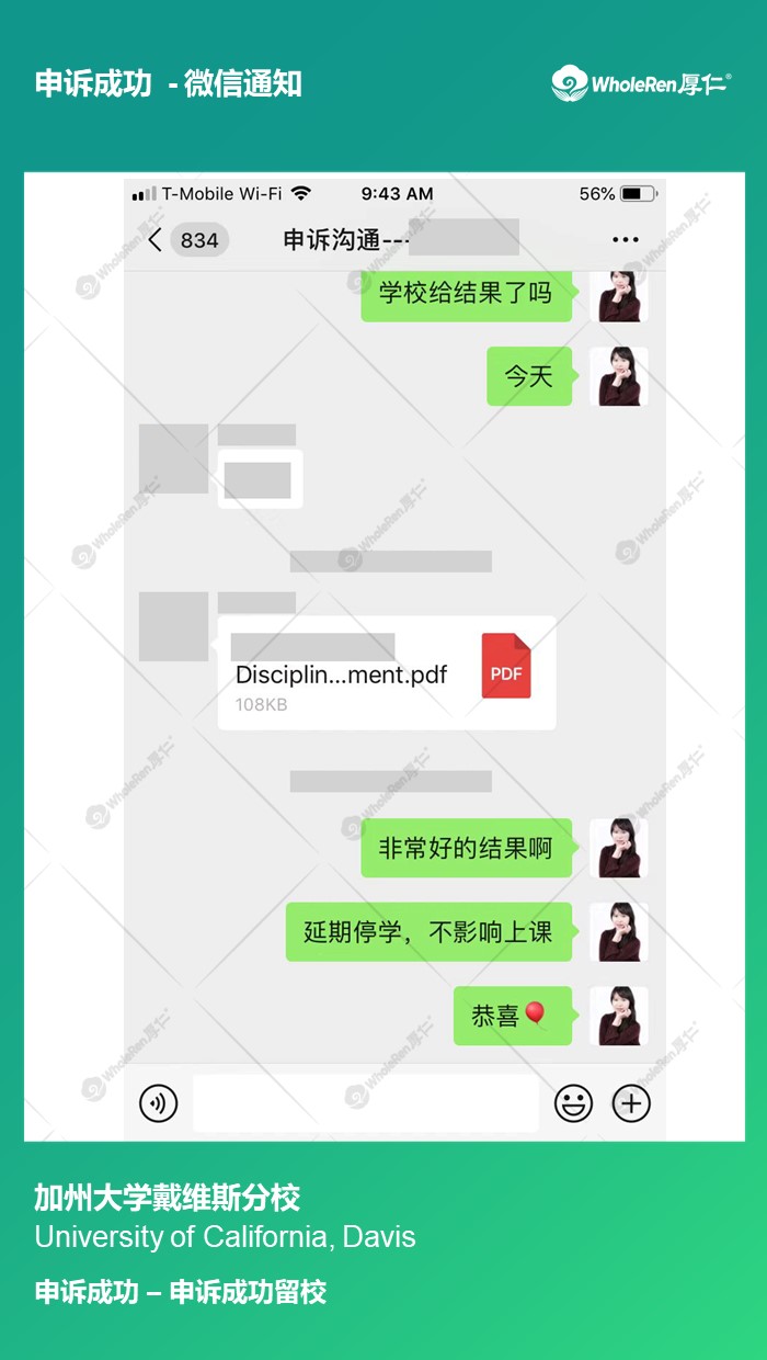 处理结果:申诉成功留校