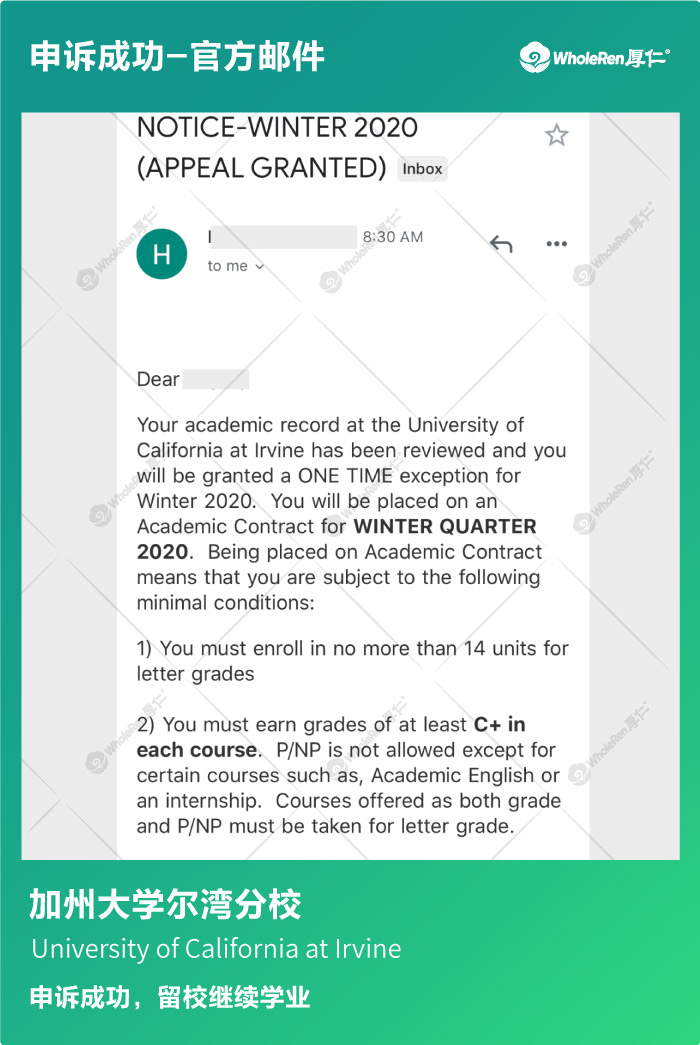 J同学在大三专业课的学习时开始出现成绩下滑现象,随着课程难度的增加以及选课过多,导致学生在学习上感到吃力,最终被学校警告。后来尝试改善学习方法,但是因为家庭原因始终让自己无法完全投入到学业中,最终因为GPA持续不达标被学校开除。 J同学感到无助,马上就要毕业了却面临开除的危机,于是急忙找到专家老师求助。专家老师在了解学生的学习经历后,指导学生准备申诉材料,并制定了详细的学习计划,证明自己有能力提高成绩。最后,学校给出了一个学期的机会,J同学成功留校。