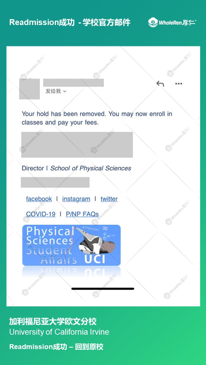 专家老师在短时间内帮助Y同学转入附近的学校继续学业,指导学生合理规划学习,并针对自己的错误行为作出反省,完成优质readmission申请信,最终成功返回原校。
