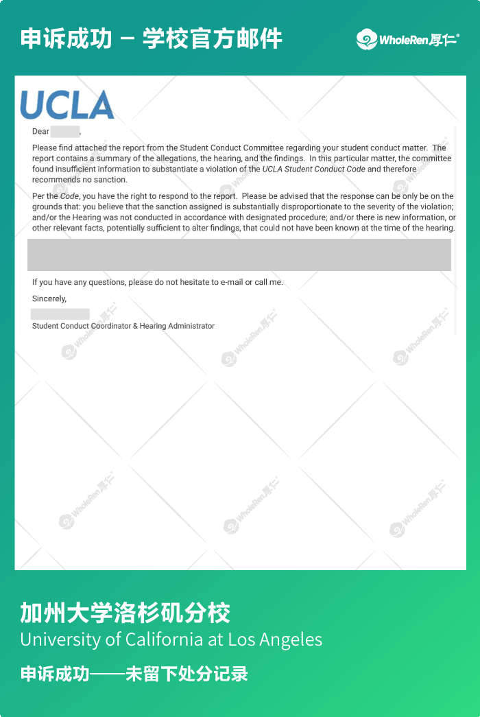 在专家老师了解情况后,立即帮助H同学分别制定应对方案,指导H同学听证会的说辞以及帮助H同学进行模拟听证会。针对每个指控都做出详细解释并阐明自己没有作弊动机。在H同学诚恳的解释下,学校相信了H同学没有违纪,撤销指控。