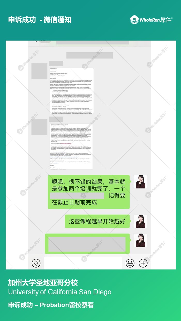 专家老师在了解事情经过后,指导学生解释证明自己的作业独立完成,针对将自己作业给别人借鉴的错误行为作出诚恳道歉和求情,最终Probation留校察看。