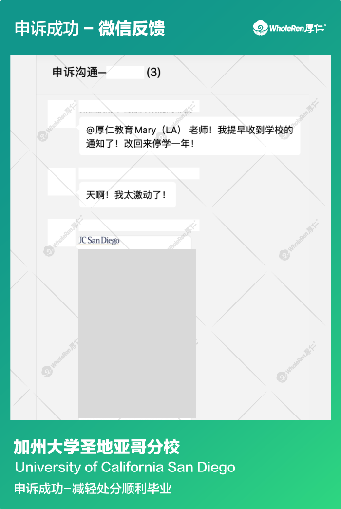 【UCSD加州大学圣地亚哥分校】X同学临近毕业被开除申诉成功