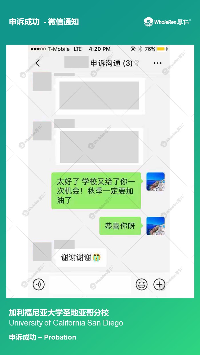 专家老师在了解学生的情况后,指导学生按学校流程解释了自己的情况,在诚恳道歉后请求减轻处分,最终获得了学校的理解,只有个Probation,避免了被停学。