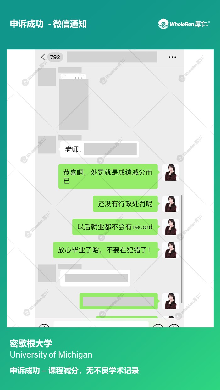 S同学在一次作业中抄袭了网上的内容,被老师上报到学校,面临调查和处分。 专家老师在了解情况后,指导学生准备应对方案,不断完善面谈陈述,最终在合理的沟通下,只有课程减分,无不良学术记录