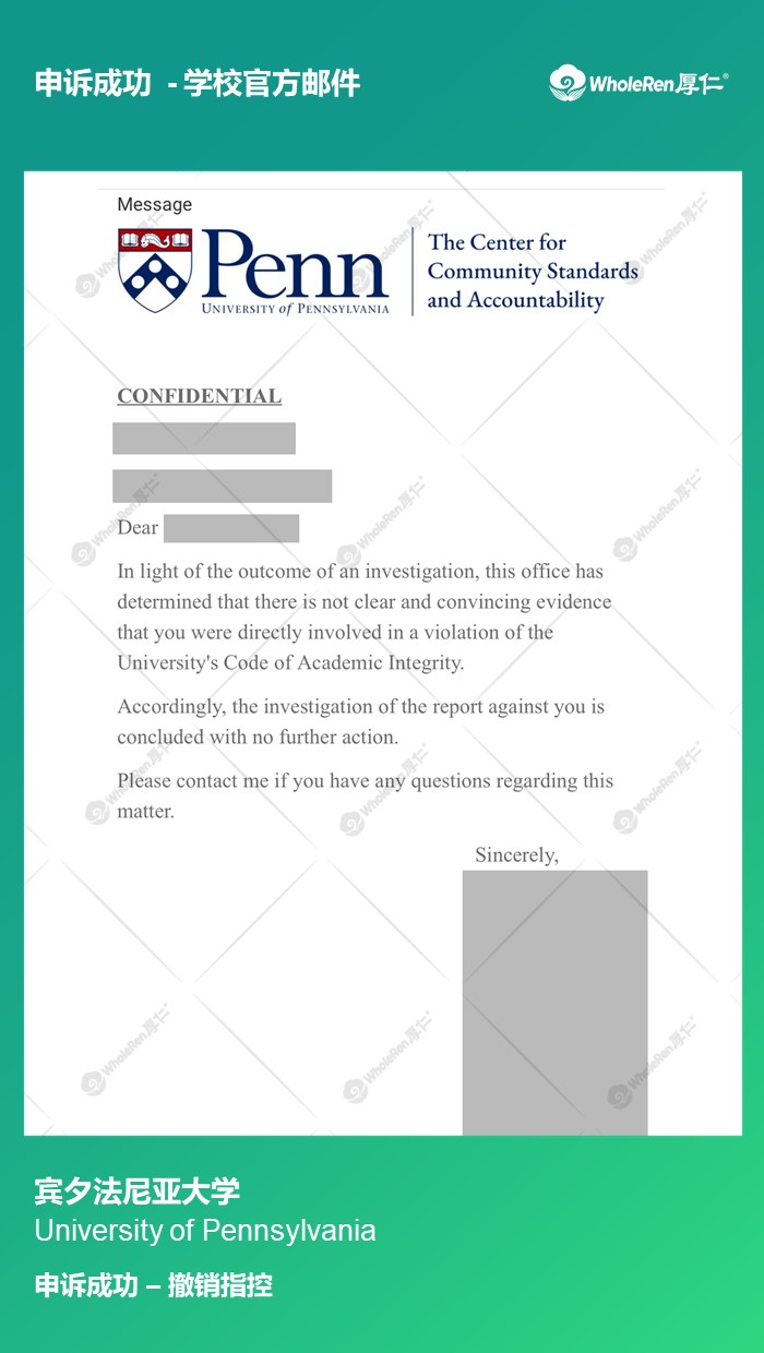 【UPenn】H同学考试被举报作弊二次不诚信帮助后顺利留校