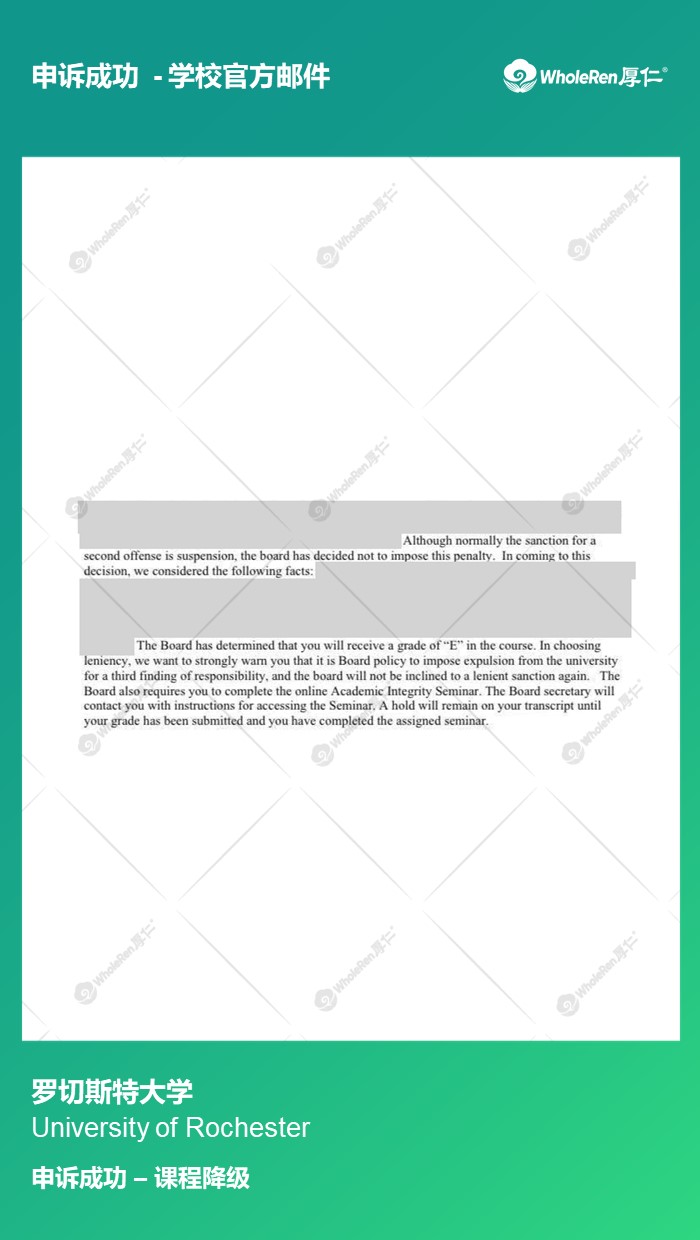 专家老师在了解学生的情况后,指导学生解释自己做作业的经过,虽然之前有过讨论,但是独立完成的作业。最终学校给出了课程E的处分,没有被停学。