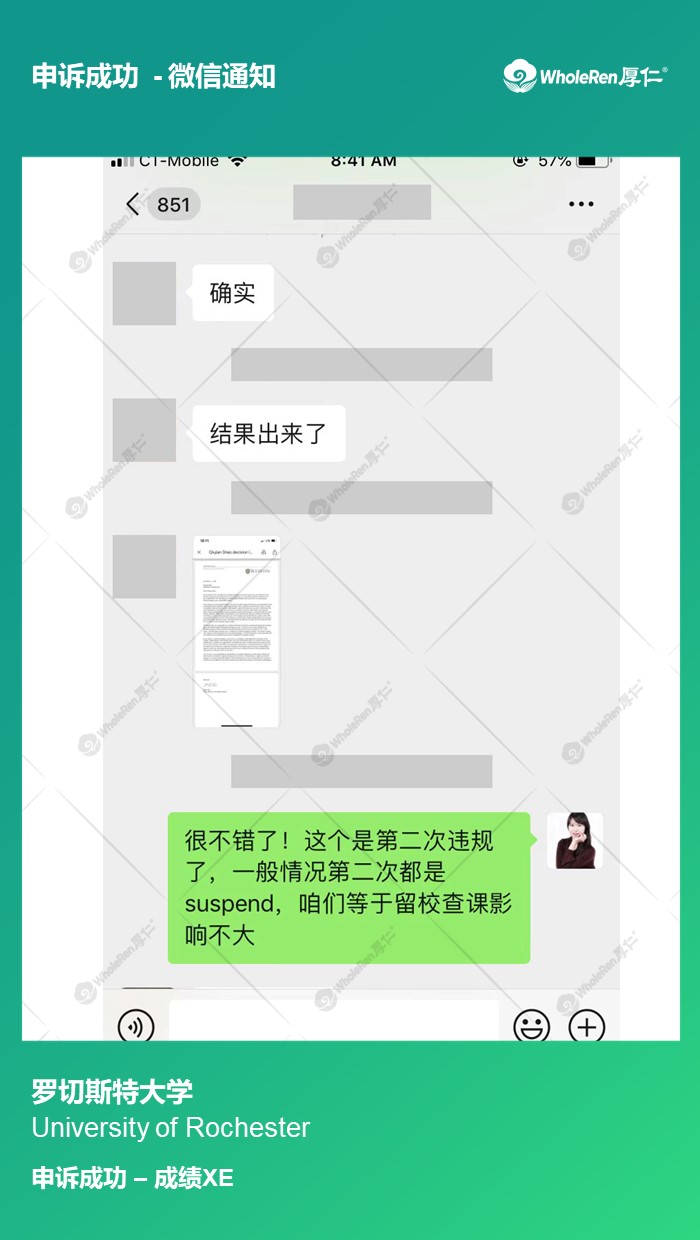 专家老师在了解情况后,指导学生诚恳道歉和求情,最终学校只给了XE的成绩,顺利留校。