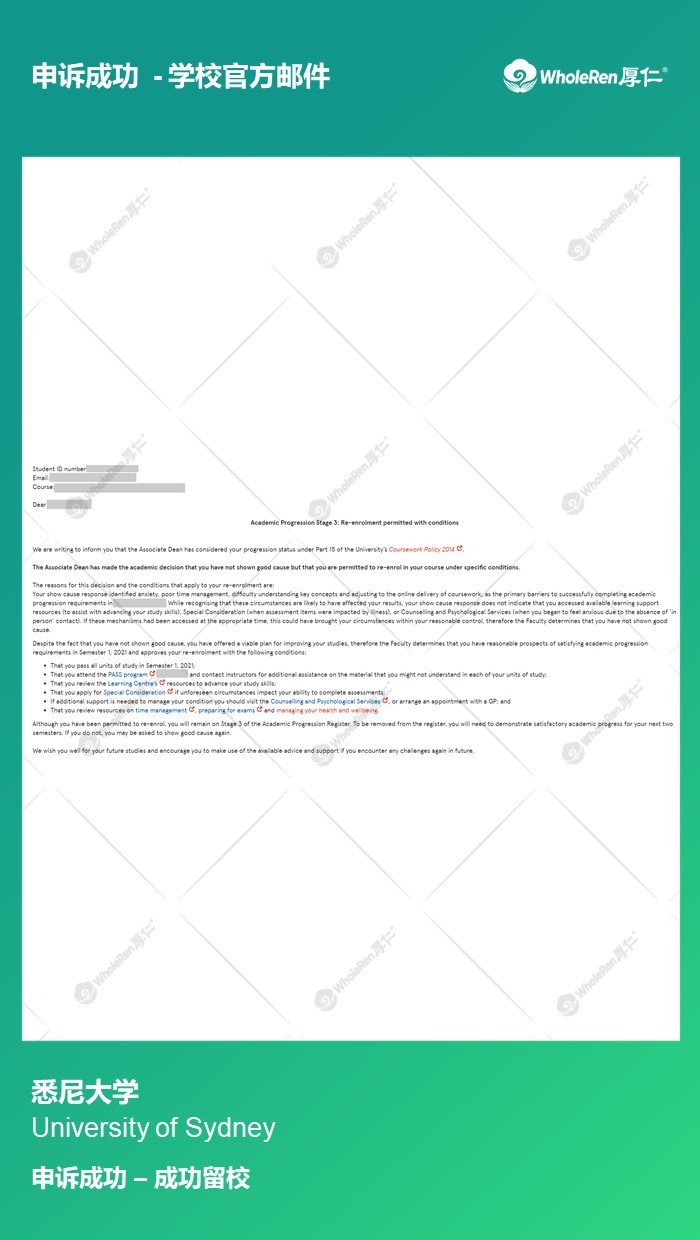 H同学之前因为选课难度较大导致成绩跟不上收到了学校的警告,疫情之后转网课,再次出现学习跟不上的现象,加上学生不善于求助于学校老师,导致GPA低被开除。 专家老师在了解学生的学习状态后,指导学生解释成绩不理想的原因,并做出合理的学习规划,最终申诉成功留校