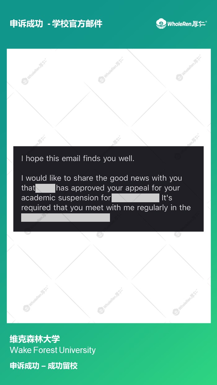 专家老师迅速帮助学生制定了申诉方案,完成优质申诉信,最终申诉成功留校。