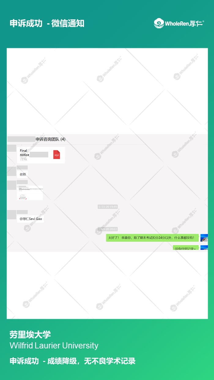 【WLU劳里埃大学】Z同学考试被举报抄袭申诉后成绩降级无不良记录