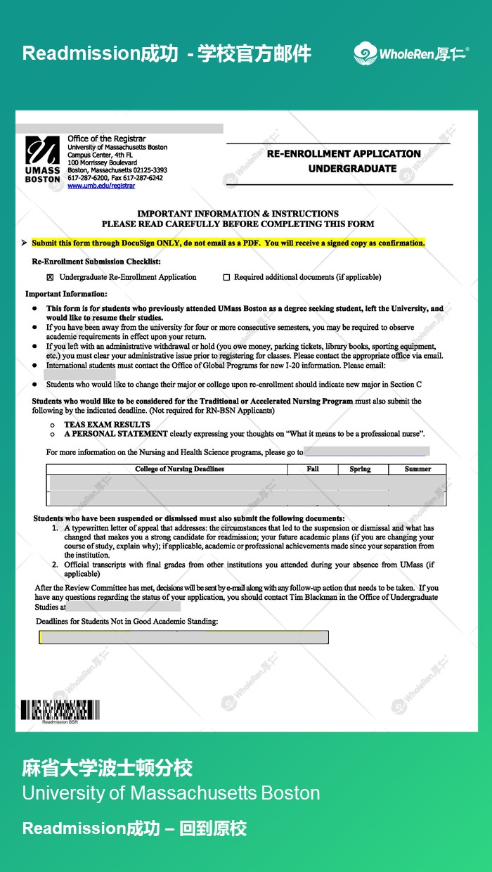 专家老师在学生被停学的期间指导学生准备Readmission的申请材料,并督促学生保持良好的学术状态,达到返校要求。最终在专家老师的帮助下顺利回到原学校。