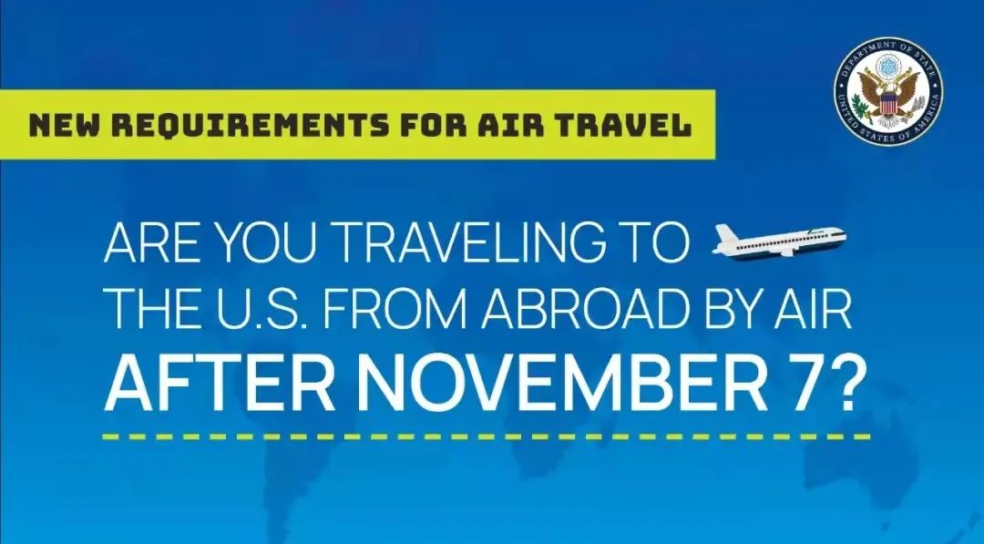 从11月8日起,除个别例外情况,乘坐飞机前往美国的成年外国国民必须提供全剂量COVID-19疫苗接种证明以及旅行前三天以内的COVID-19阴性检测结果。
