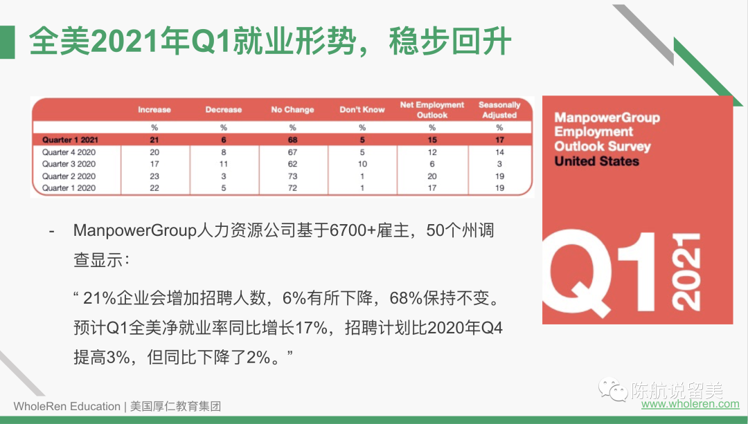 感谢各位家长同学观看本周六的《2021留美就业趋势》讲座,很高兴能通过这次讲座和职尚行的李欢老师、Carrie老师一起,为大家解读劳工部10年就业预测数据,并分享几个真实的案例给大家。