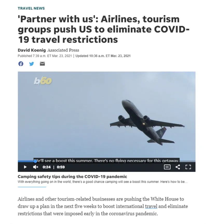 拜登曾承诺在今年夏天可以为所有美国成年人提供充足的疫苗,所以旅游行业组织希望政府能提前公布计划,以便在差不多全民接种完成后能快速让生意重回正轨。