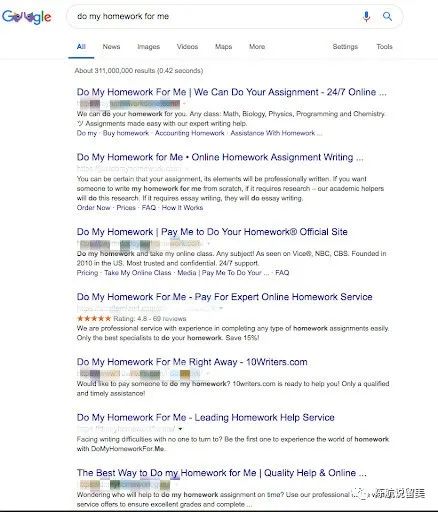 如果在谷歌上搜 『 Do my homework for me (替我写作业)』,结果是这样的: