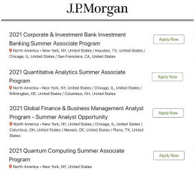 除了大热的科技公司外,麦肯锡、摩根大通、摩根斯坦利等华尔街金融公司也纷纷开启了暑期的校招的招聘,比如: