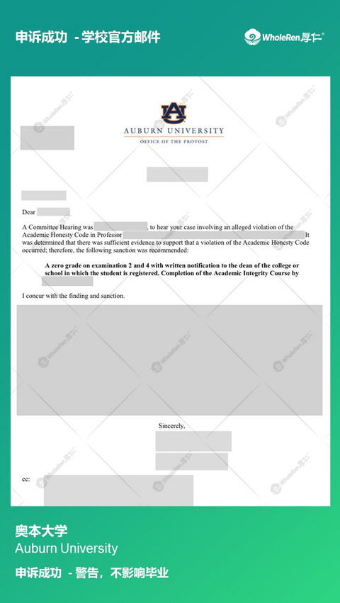 紧急原因:学术不诚信被停学