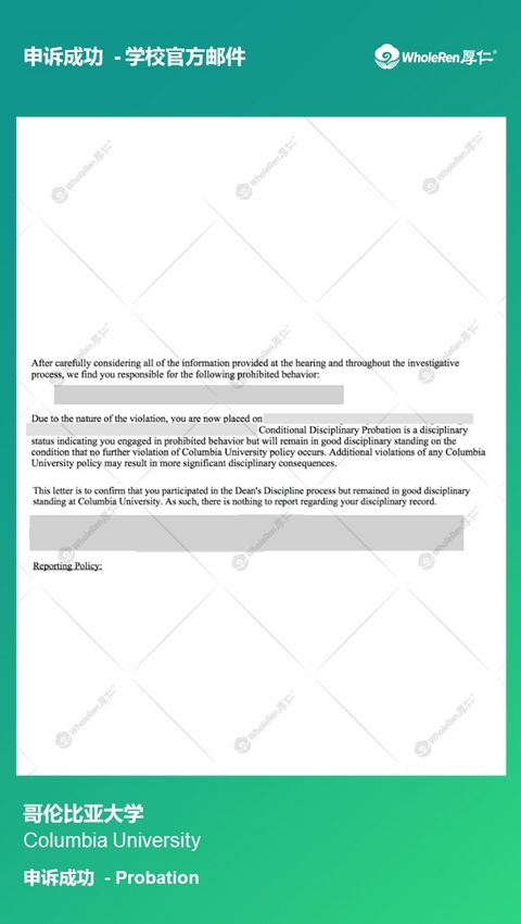 处理结果:Probation留校察看