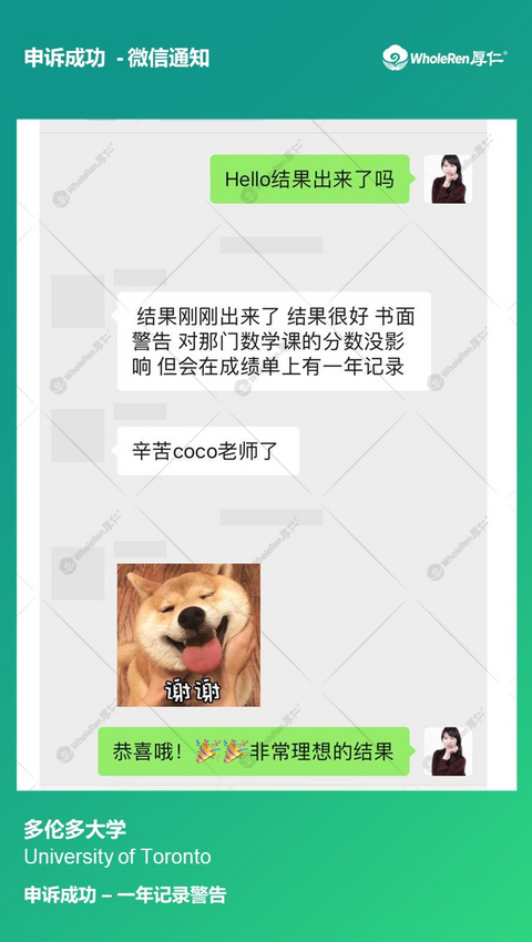 专家老师详细了解情况后,为S同学制定了全面的应对措施,帮助整理解释材料,指导与老师的沟通。学校愿意再给学生一次改正的机会,给出了警告通知,没有不良学术记录。