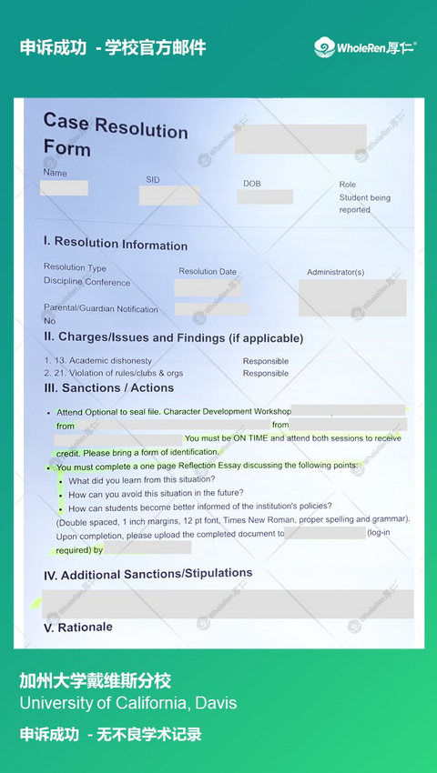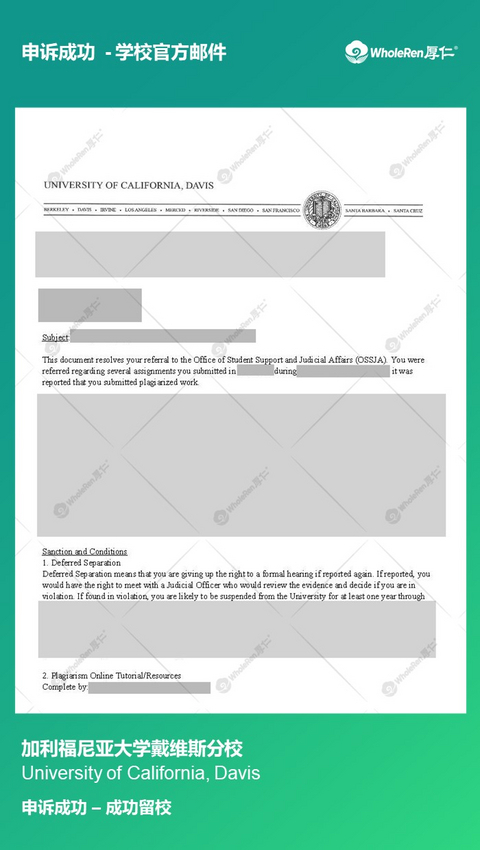 收到 University of California Davis 处分怎么办?