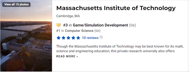 在U.S.News最新发布的2022全美大学排行榜中,也发布了最佳本科游戏设计专业(Best Undergraduate Game Design Programs)排名TOP10,今天我们就来看看该专业Top 10院校在计算机科学专业大类中的排名,给大家作为参考。