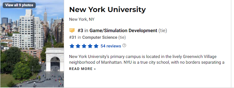 【 专业排名 】U.S. News 发布本科「游戏设计」排名!边玩边学还能拿高薪
