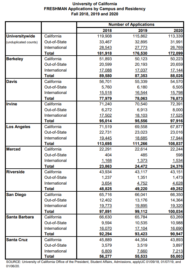 近三年加州大学的申请人数呈逐年递增的趋势,预计今年虽然有疫情,申请热度仍然不减。