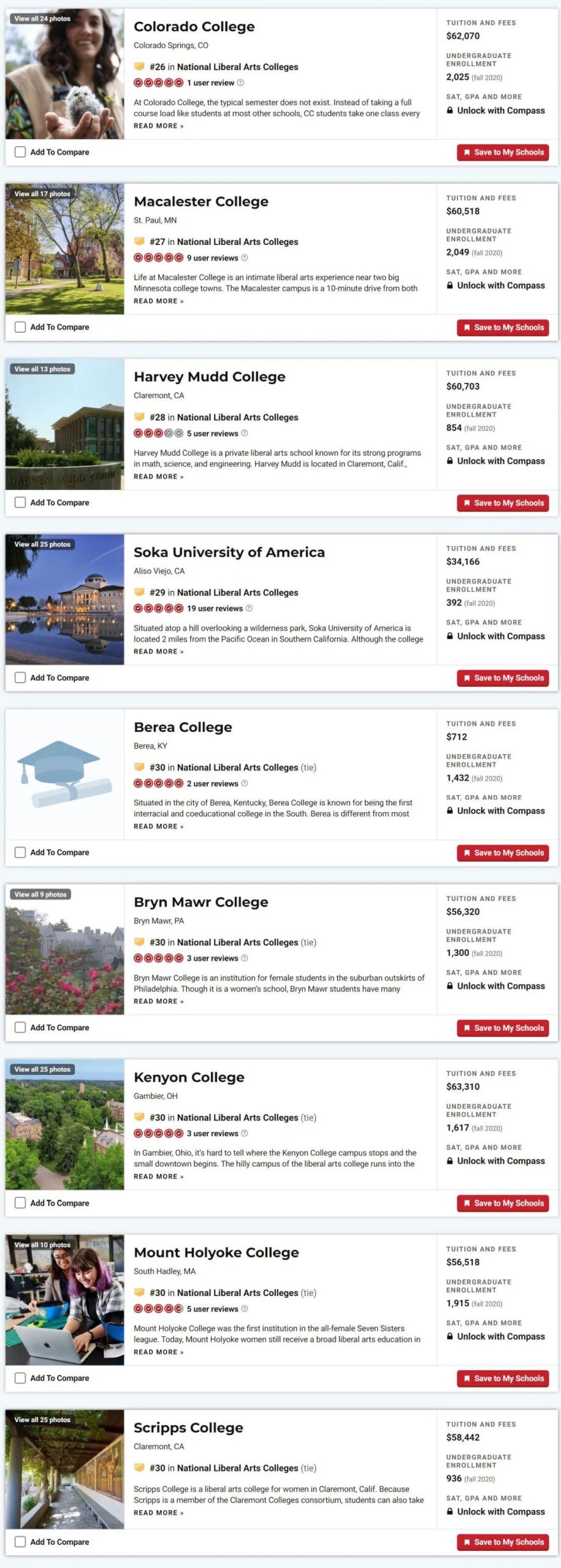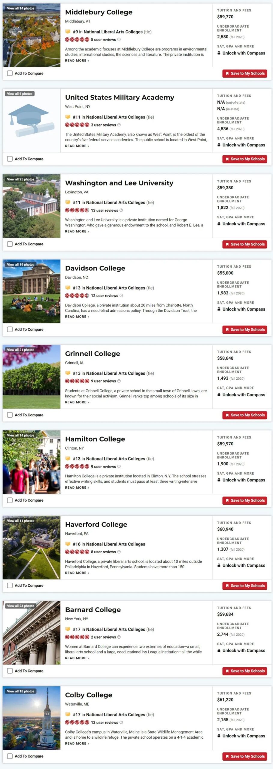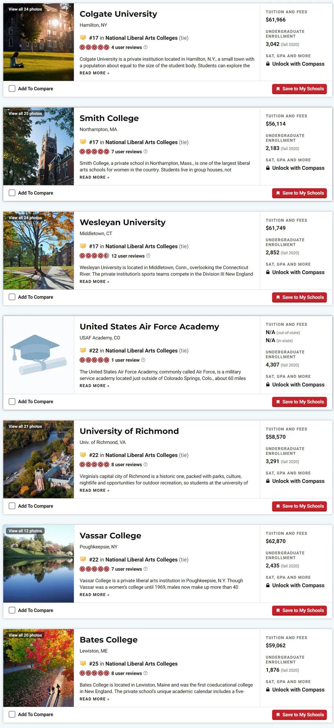巴纳德女子学院跻身Top20,位列第17,与科尔比学院、科尔盖特大学、史密斯学院、卫斯理大学并列。